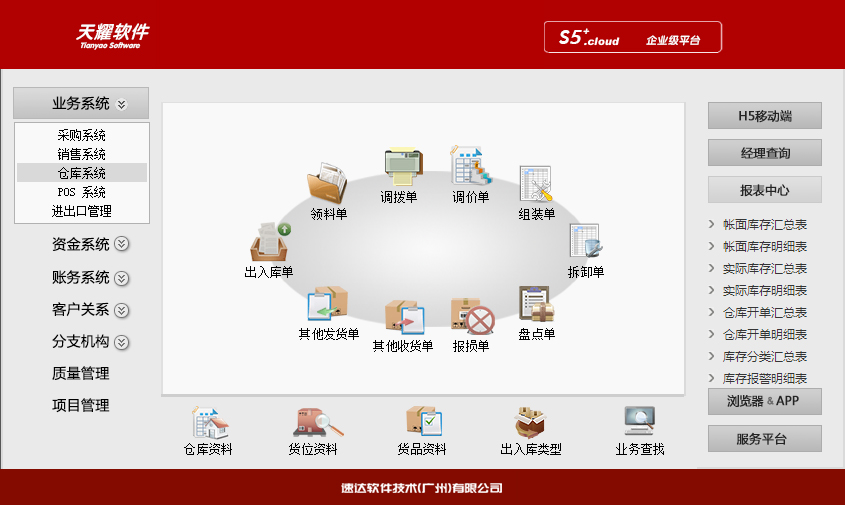 《天耀S5+.cloud》是速達軟件公司最新推出的平臺化企業管理應用系統。支持云部署和桌面服務器部署及APP部署,高度滿足企業應用平臺化的需求,實現了跨平臺部署應用,大大提升了應用效率和安全性。平臺化產品融入了企業經營管理和辦公管理思想,提高了企業運營質量,系統有效的將龐大的供應鏈業務管理和OA企業辦公同置于《天耀S5+.cloud》平臺。同時平臺支持瀏覽器端(B/S)、桌面端(C/S)、移動應用(APP)等多種應用模式,真正滿足企業管理和OA辦公的個性化需求,全面提升企業綜合管理能力。