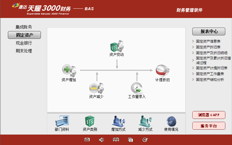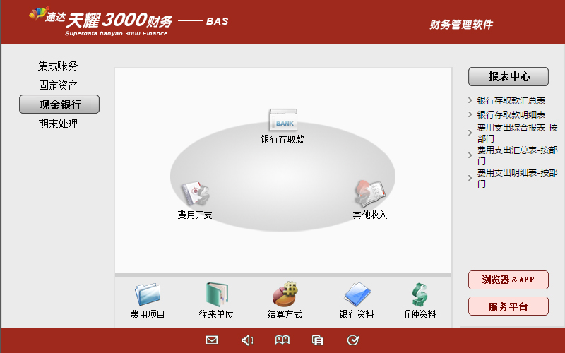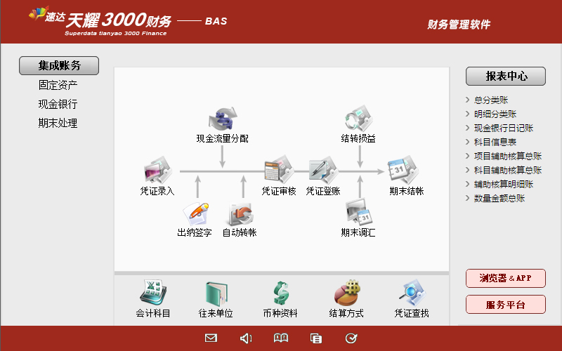 《天耀財務-Bas》完全符合國家現行會計制度標準。功能強大、易學易用。產品集財務管理、現金銀行、固定資產管理、自定義報表于一體。特別適合中小企業使用。