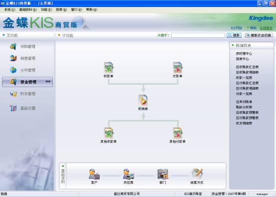 通過收款單、付款單、其他收款單、其他付款單、核銷單五張單據,處理同供應商、客戶的主營業務以及非主營業務的往來結算,綜合反映企業全盤收支情況