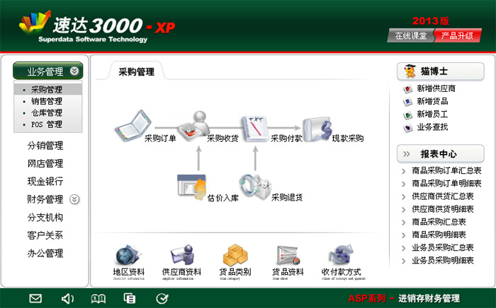 《速達3000G-XP商業版》集進銷存、POS、財務、CRM、OA為一體的中小企業管理軟件系統。系統采用導航式界面,易學易用、功能強大,是幫助中小企業規范經營管理、財務管理的有效工具。系統支持局域網/互聯網多用戶應用,實現異地多機構、多店面、多倉庫等遠程應用,支持Android移動終端應用,數據實時同步,安全、穩定、高效、易維護,特別適合中小企業使用。